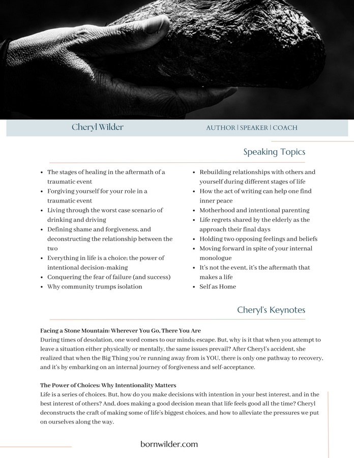 It’s a potent collection that invites readers to walk in Cheryl’s shoes. And, it provides traction for assessing and moving beyond these poignant and powerful moments of quiet desperation.” –Diane Donovan, Midwest Book Review