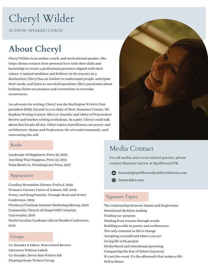 Please visit the Invite Cheryl webpage to fill out a contact form, or contact Hannah Larrew at Spellbound PR for all media and event related queries: hannah@spellboundpublicrelations.com.